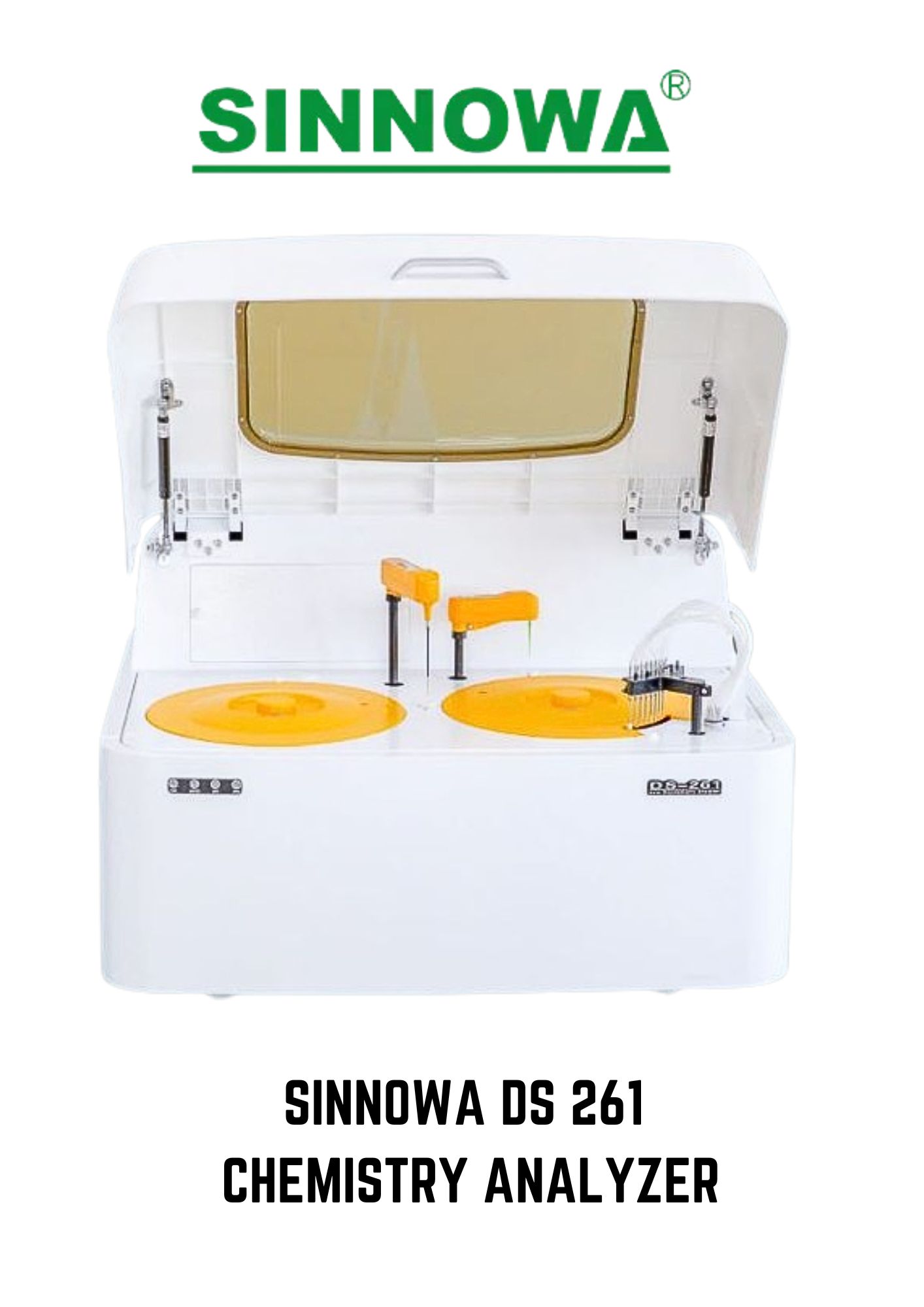 SINNOWA DS261 is a random-access, high-speed fully automatic clinical chemistry analyzer, with intelligent multitasking software, automatic calibration, barcoding, innovative cuvette washing station. The photometric throughput is 270 tests/hour. Concentric sample and reagent-refrigerated disks compact and speed up the system.